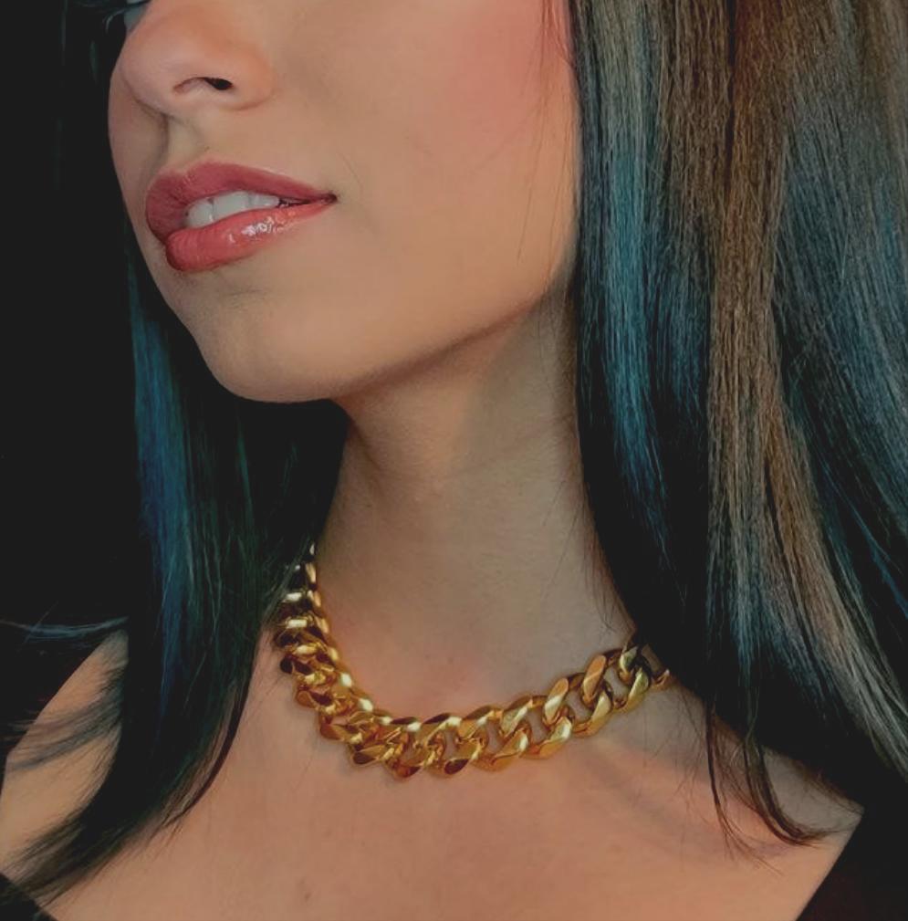 Chunky Curb Chain Necklace 20K Gold IP Plated Cuban Chain Choker